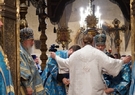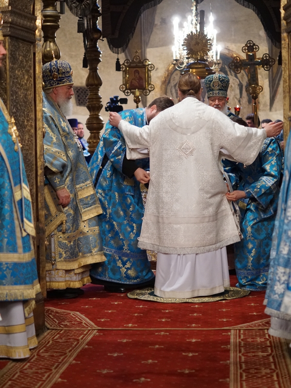 После сугубой ектении Предстоятель Русской Православной Церкви вознес молитву о мире на Украине.