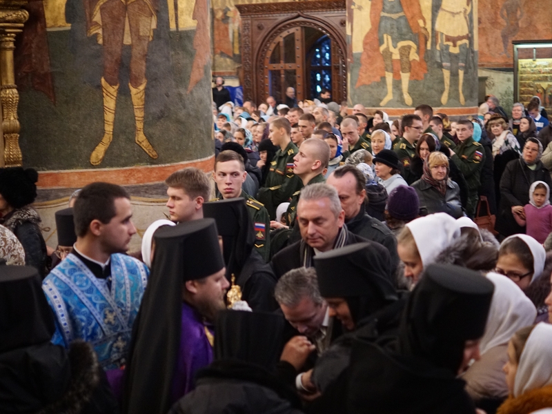 По традиции Патриаршее богослужение в праздник Введения во храм Пресвятой Богородицы посетили представители Военной академии Ракетных войск стратегического назначения им. Петра Великого.