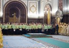 За Литургией пели хоры Храма Христа Спасителя (регент — И.Б. Толкачев) и Сретенского ставропигиального монастыря (регент — Н.С. Жила).