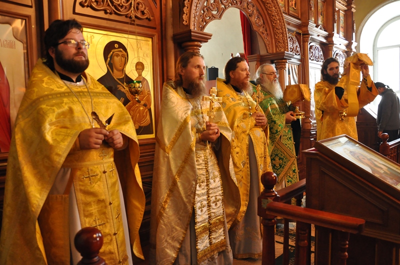 Наместнику сослужили: настоятель Александро-Невского монастыря игумен Феодосий (Шитов), настоятель подворья Чебоксарского Свято-Троицкого мужского монастыря в селе Б. Сундырь Моргаушского района иеромонах Игнатий (Суранов), иеромонах Алексей (Щукин)насельник Свято-Пафнутьева Боровского мужского монастыря, иеродиакон Макарий.