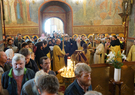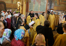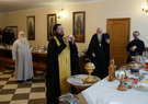 Братия, приложившись ко кресту, с чином "Панагии" проследовала на трапезу.