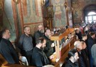 Братия, приложившись ко кресту, с чином Панагии проследовала на трапезу.