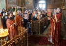 Воскресное Всенощное Бдение возглавил наместник монастыря иеромонах Пафнутий (Архипов), а позднюю Божественную Литургию совершил схиархимандрит Власий (Перегонцев).