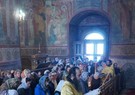 За Богослужением молитву о мире на Украине - вознесенную после сугубой ектении – перед престолом произнес духовник обители схиархимандрит Власий.