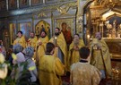 Братия, приложившись ко кресту, с чином Панагии проследовала на трапезу.