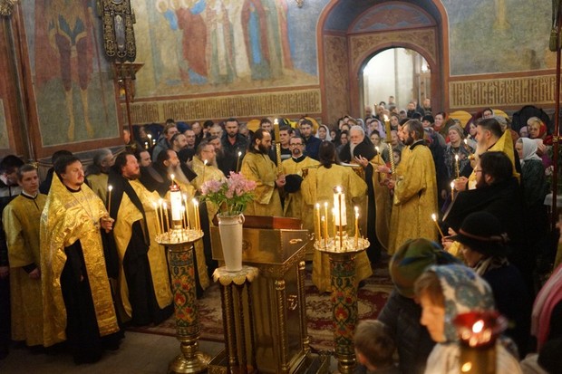 На Литургии, после сугубой ектении Предстоятель вознес молитву о мире на Украине.