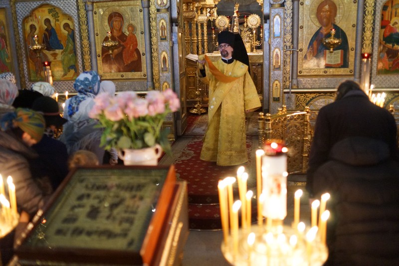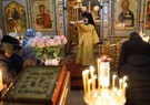 После Литургии был совершен чин славления и от лица всех молящихся предстоятель отец наместник иеромонах Пафнутий вознес молитву ко Пресвятей Царице Небесней Богородице.