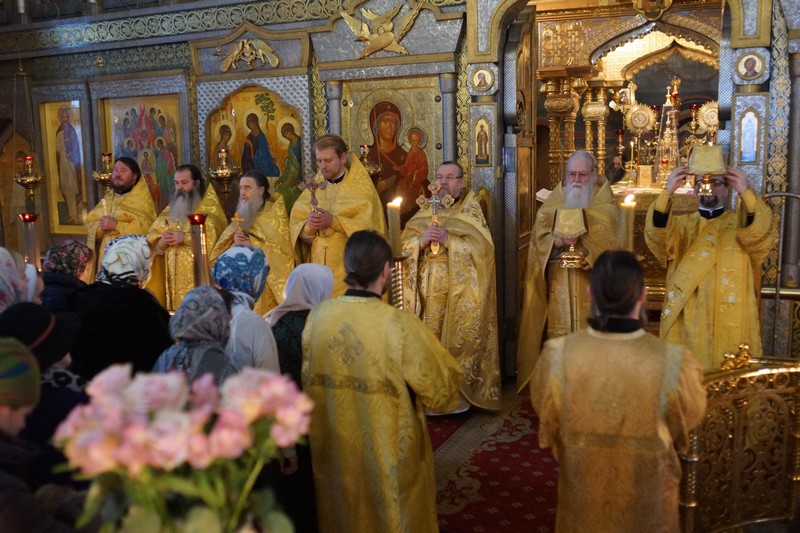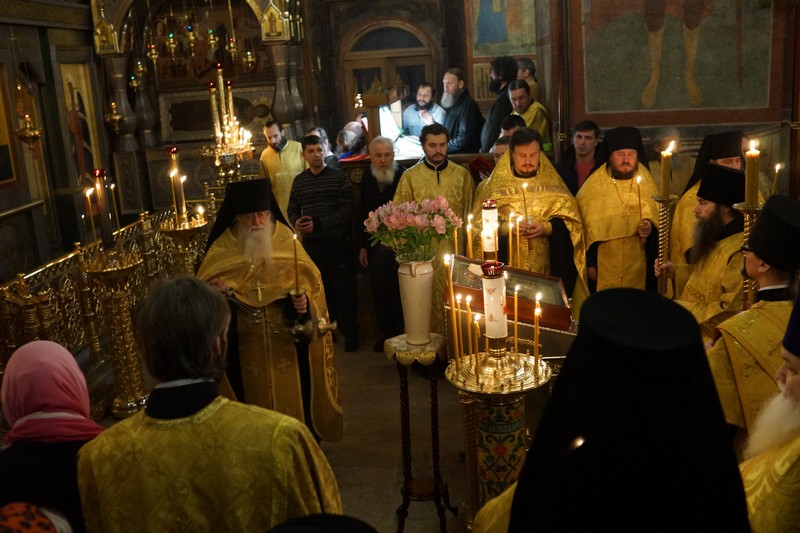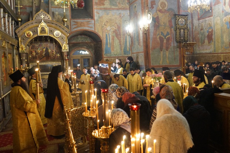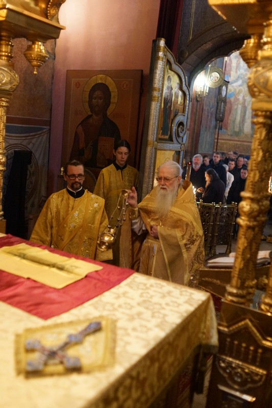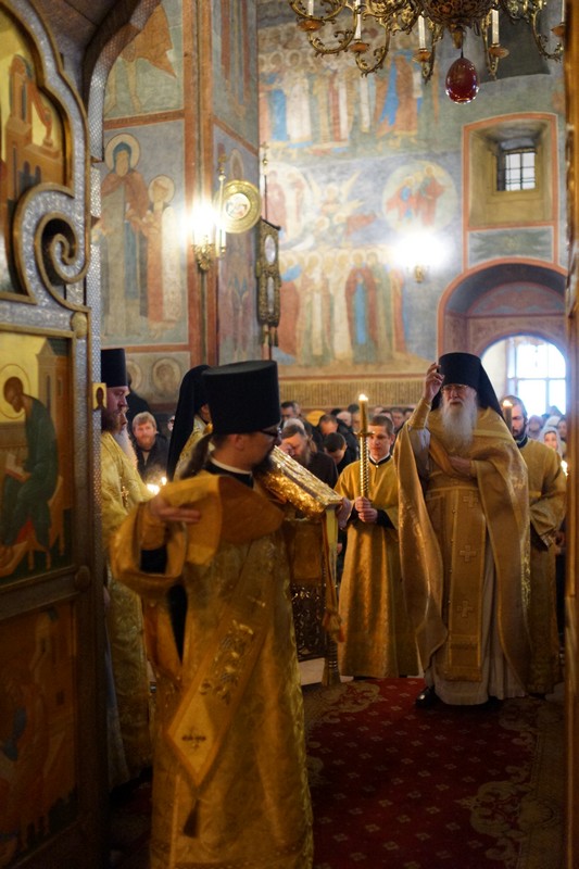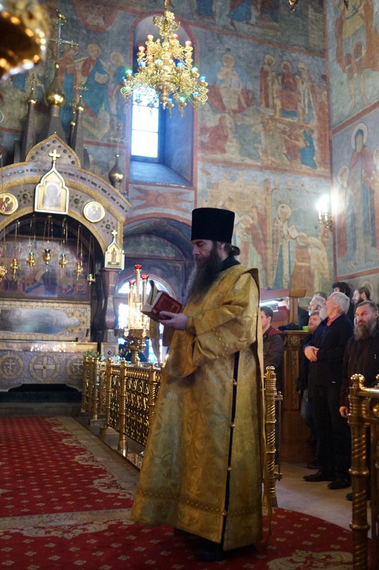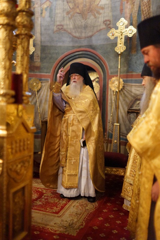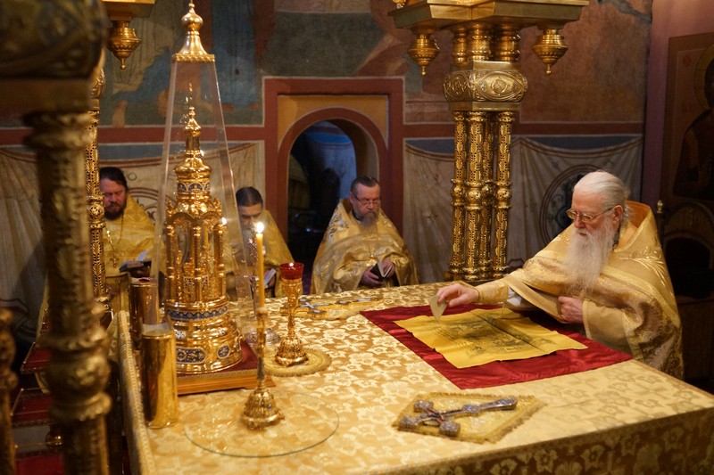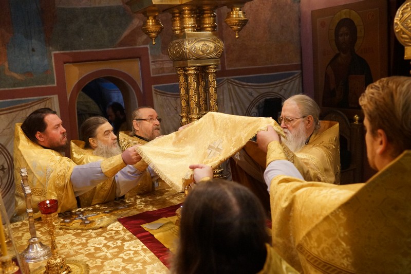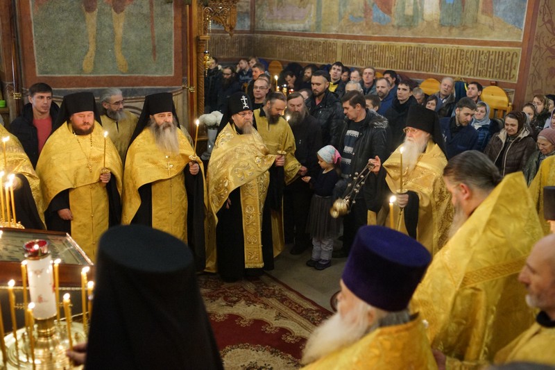 Богослужение завершилось чином Панагии, которую совершил игумен Силуан.