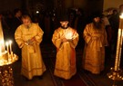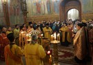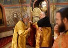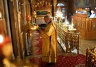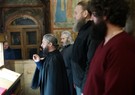 Братия, приложившись ко кресту, с чином Панагии проследовала на трапезу.