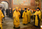 На сугубой ектенье были произнесены особые прошения, возносимые во время вредоносного поветрия, после которых предстоятель прочел молитву, чтомую во время распространения вредоносного поветрия.