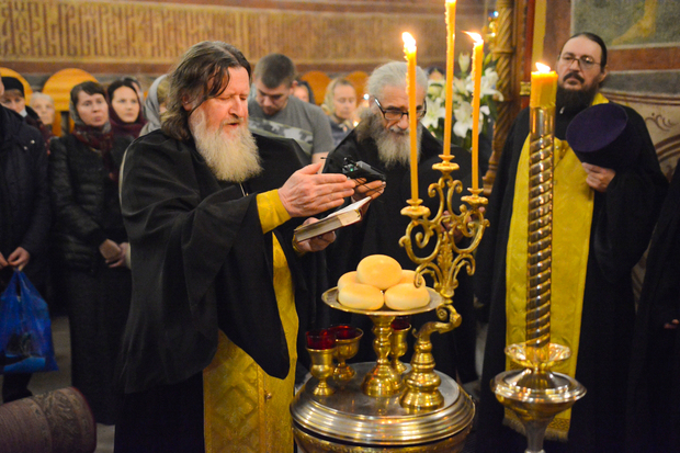 По запричастном стихе проповедь произнес игумен Силуан.