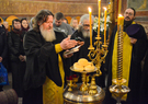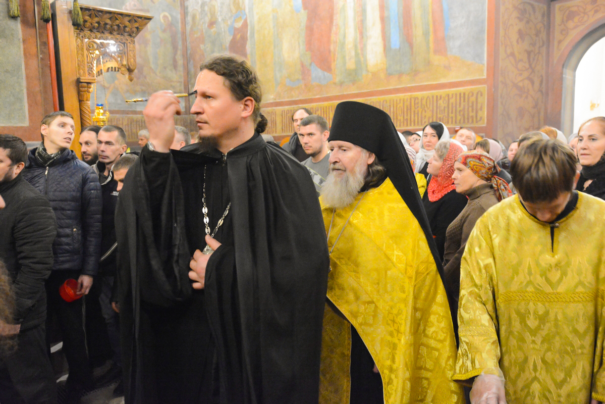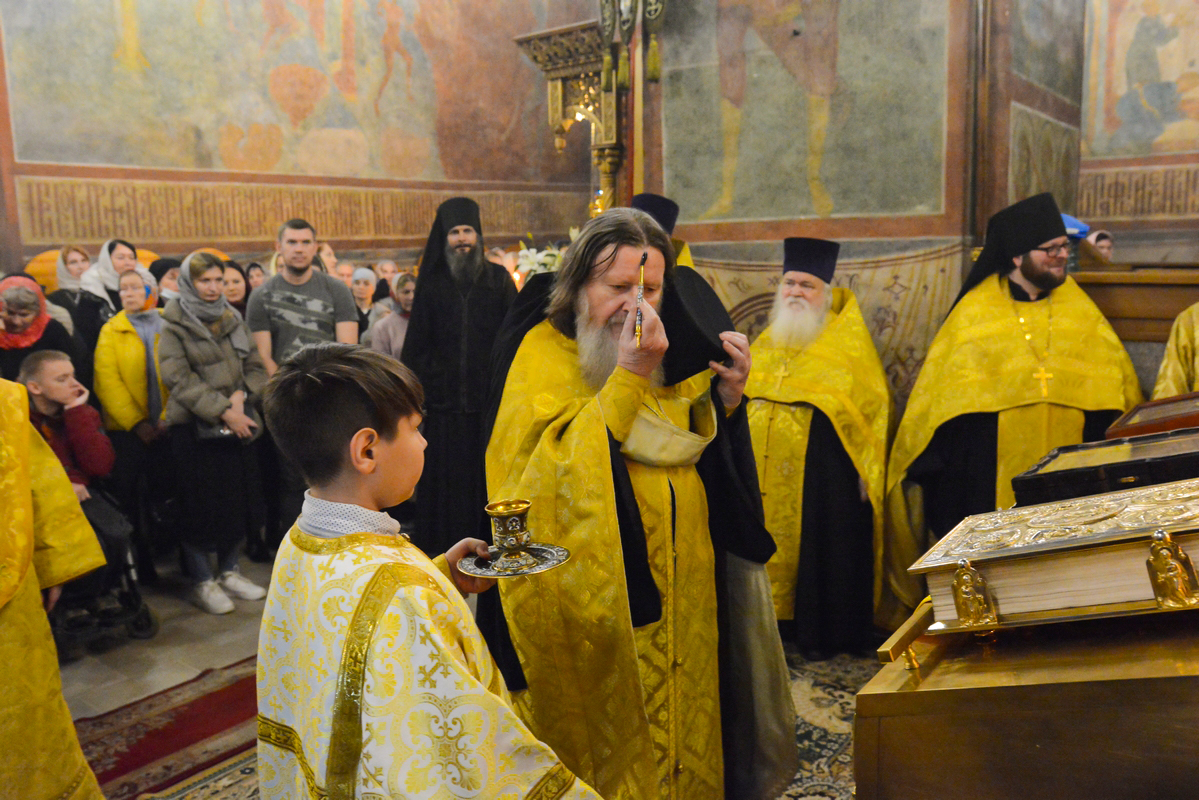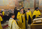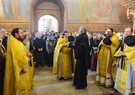 После отпуста духовенство совершило славление с пением тропарей и величаний апостолу Луке и преподобному Иосифу Волоцкому, день памяти которых празднуется сегодня.