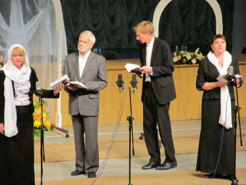 Работу пленарного заседания Богородично-Рождественских образовательных чтений продолжила театрализованная презентация новой книги митрополита Калужского и Боровского «Слово и вера», подготовленная лауреатом международных фестивалей Камерным духовным театром (художественный руководитель Наталия Олеговна Башева). Книга размышлений Владыки представляет собой обширный срез живой церковной жизни, поднимает многие животрепещущие проблемы современного мира и общества, наставляет и укрепляет людей в православной вере. Книгу можно приобрести на книжной выставке-ярмарке Издательства Белорусского Экзархата, которая будет работать с 27 сентября по 3 октября с 10.00 до 19.00 по адресу: г. Калуга, ул. Кирова, 31, рядом с кинотеатром «Центральный».