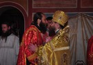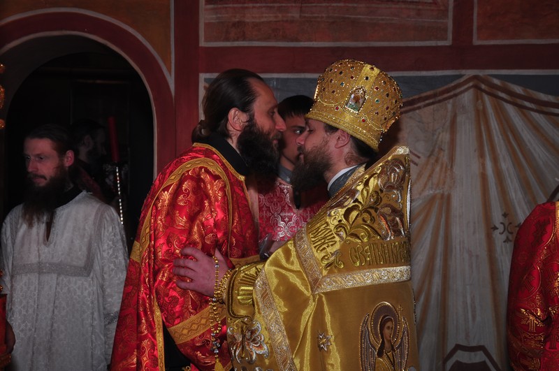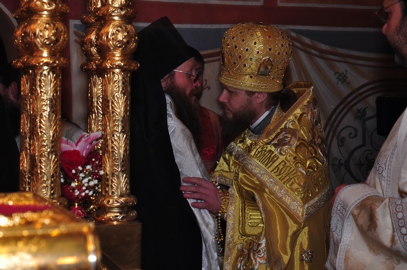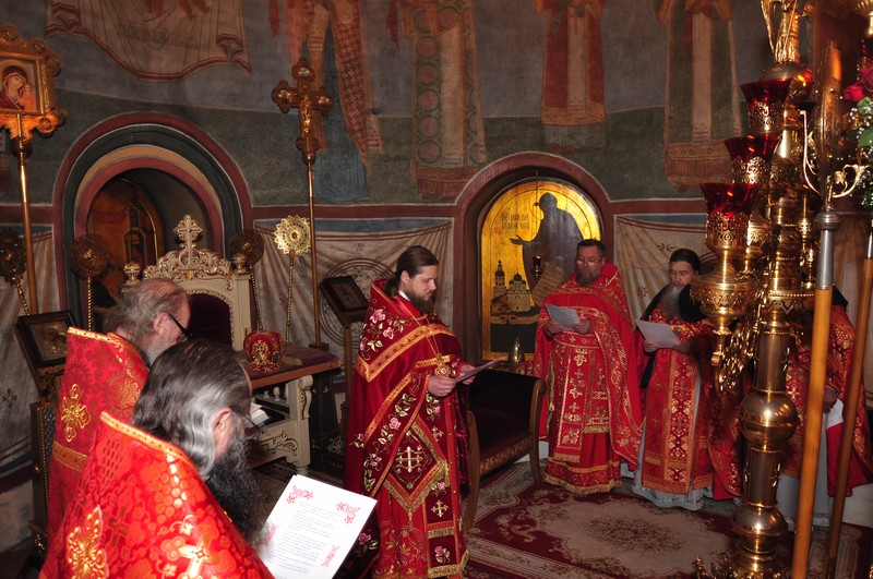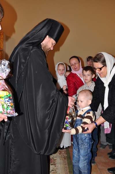 После праздничной трапезы в помещении храма Рождества Христова отец наместник поздравил братию монастыря с великим праздником. От лица братии поздравительное слово сказал схиархимандрит Власий.