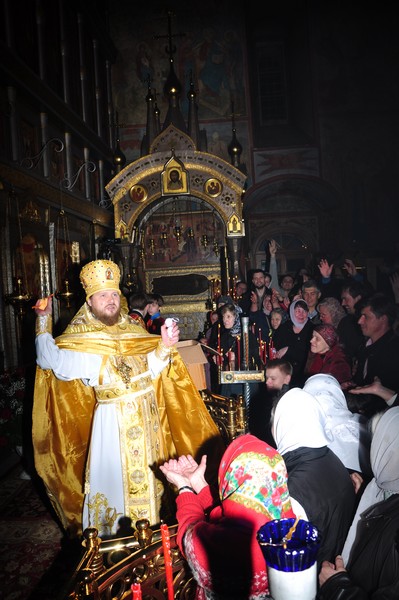 В ночь на 5 мая 2013 года в соборе Рождества Пресвятой Богородицы нашей обители были отслужены торжественные Пасхальные богослужения: полунощница, крестный ход, утреня и Божественная литургия свт. Иоанна Златоуста, возглавил которые отец наместник архимандрит Серафим (Савостьянов).