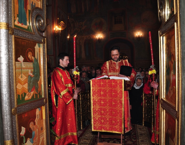 В 10 ч. отец Серафим в сослужении иеромонаха Иосифа (Королева) и иеромонаха Саввы (Петрушко) совершил Пасхальную утереню на монастырском подворье - в Покровском храме г. Боровска.