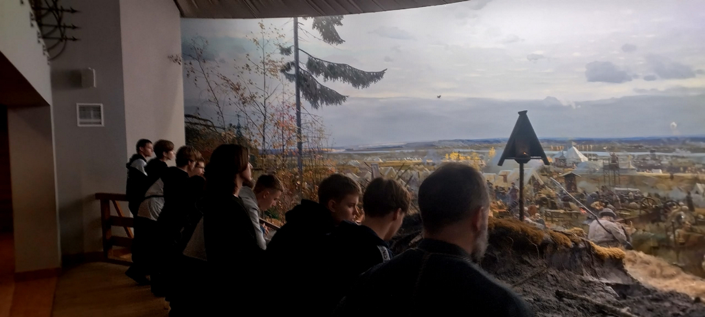 Первой остановкой стал музей-диорама «Великое стояние на реке Угре» во Владимирском скиту. Учащиеся увидели уникальное художественное полотно, рассказывающее о победе русского оружия в 1480 году и освобождении Руси от ордынского ига.