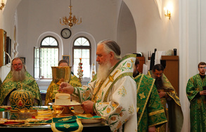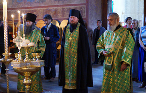 Насельник монастыря иеромонах Алексей сослужил с архимандритом Василием (Паскье) на литургии в Неделю Всех святых с. Б. Сундырь.