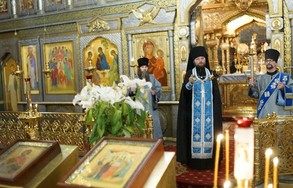 Отец наместник на архиерейской Литургии в монастыре Лаврентия Калужского