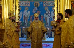Наместник монастыря совершил Божественную литургию в Кафедральном соборе Калуги