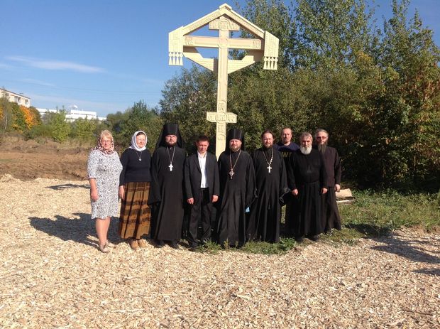 На месте будущего храма в честь иконы Божией Матери Достойно Есть на улице Комсомольской в городе Балабаново установлен Поклонный крест.