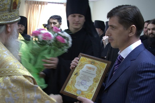 17 декабря состоялось освящение здания Миссионерско-просветительского центра при Пафнутьево-Боровском монастыре. Чин освящения совершил Митрополит Калужский и Боровский Климент в сослужении наместника Свято-Пафнутьева монастыря архимандрита Серафима и монастырского духовенства. После освящения в напутственном слове Владыка выразил надежду, что Центр станет домом гостеприимства и заботы о ближнем. Еще со времен преподобного Пафнутия обитель всегда с любовью принимала всех страждущих, ищущих духовной помощи и исцеления от многообразных недугов. В наше время существование при монастыре такого Центра - великое благо для многих и многих людей: теперь они смогут, приехав сюда на несколько дней, ежедневно бывать на богослужениях в монастыре, не спеша подготовиться к Причащению, что зачастую стало весьма затруднительным в условиях больших городов. Благословенные архиерейские грамоты за понесенные труды из рук Владыки получили благотворители, строители и администраторы - все те, без кого возведение Центра было бы невозможным. Особую благодарность Митрополит Климент выразил Ирине Вячеславовне Абрамович, спонсору строительства, тепло отметив ее добрую отзывчивость на нужды обители. Грамоты также получили: Елена Ивановна Старикова, помощник Ирины Вячеславовны Абрамович; Николай Вячеславович Артамонов, президент группы компаний «Латос», осуществивший поставку необходимого оборудования и предметов интерьера; Дмитрий Константинович Князев, генеральный директор ООО «Возрождение», осуществлявший строительство Центра; Олеся Андреевна Пухова, внесшая большой вклад в подготовку к эксплуатации помещения гостиницы и воскресной школы.