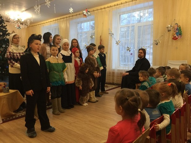 13 января воскресная школа при Благовещенском соборе в рождественские дни посетила дет.сады «Рябинка» в Боровске и «Умка» в свх. Боровский. Ребята представили праздничный концерт и сказку.