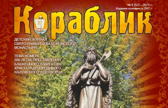 Издательством Свято-Пафнутьево монастыря выпущен новый номер журнала "Кораблик". В издании публикуются просветительские материалы для чтения детей и родителей. Шестой номер журнала посвящен 500-летию преставления блаженного Лаврентия, Христа ради юродивого, Калужского Чудотворца. Приобрести печатную версию журнала можно в иконно-книжной лавке монастыря. Познакомиться с электронной версией издания можно здесь.