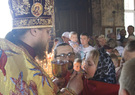 После освящения креста духовенство в том же составе совершило Божественную литургию. Настоятель храма отец Александр предложил народу слово назидания, в котором прославлял святителя Николая, как одного из самых великих молитвенников за нас пред Богом.