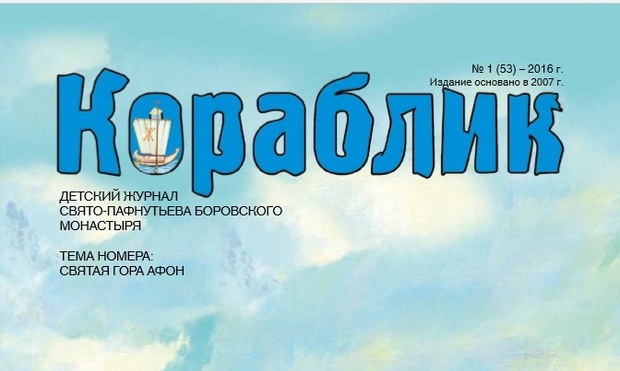 Издательством Свято-Пафнутьева монастыря выпущен новый номер журнала "Кораблик". В издании публикуются просветительские материалы для чтения детей и родителей. Первый номер журнала "Кораблик" в 2016 году посвящен 1000-летию присутствия русских на Святой Горе Афон. Приобрести печатную версию журнала можно в иконно-книжной лавке монастыря. Познакомиться с электронной версией издания можно здесь. Ознакомиться с условиями подписки на журнал можно здесь.