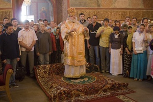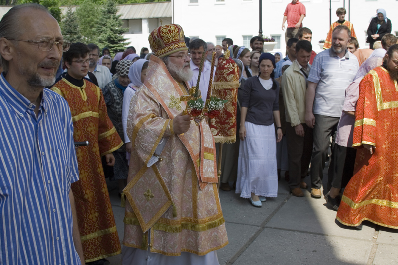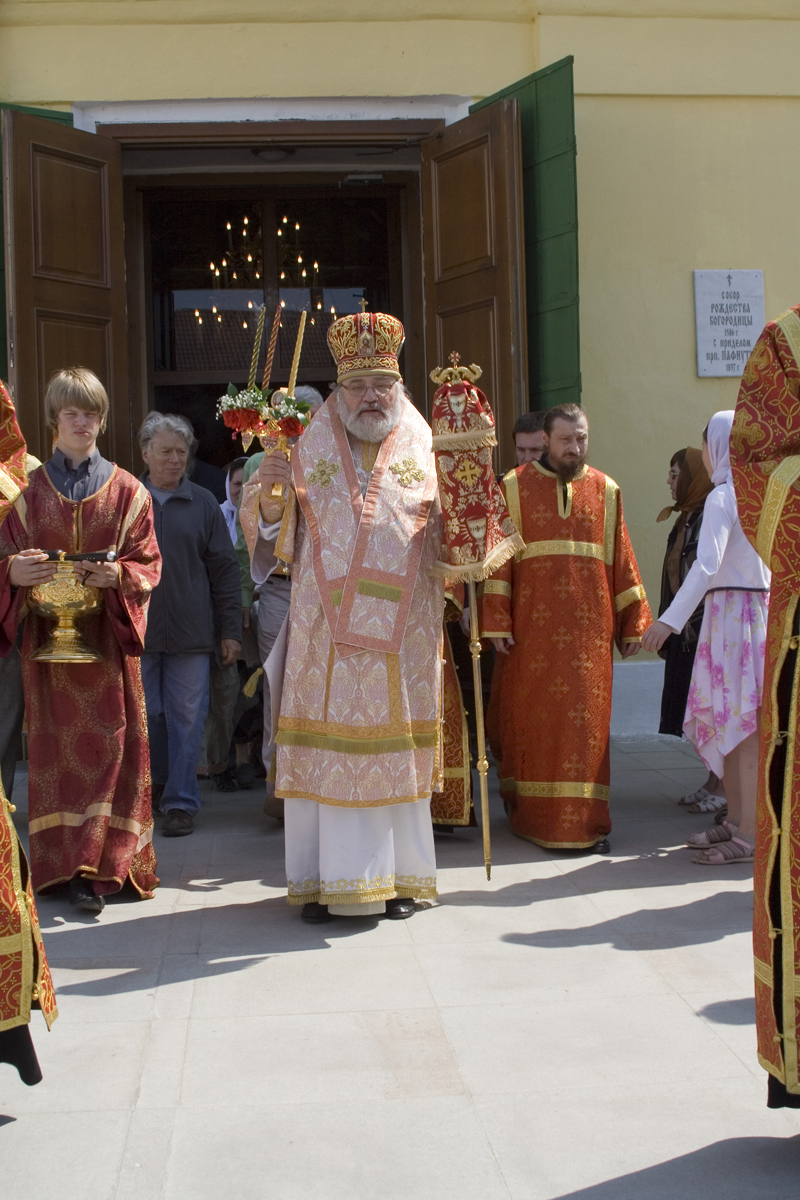 29 мая Свято-Пафнутьев монастырь посетил высокопреосвященнейший Лонгин архиепископ Клинский. Владыка приехал к середине Всенощного бдения, а с утра возглавил воскресную Божественную литургию. В богослужении помимо монастырского хора приняли участие несколько человек из епархиального хора. Получилась настоящая праздничная служба, доставившая большое утешение верующим. После торжественной литургии состоялся крестный ход, в конце которого прихожанам было преподано архипастырское наставление. В своем слове владыка напомнил о седьмом дне, как особо выделенном Богом, который должен быть посвящен Ему. Вспоминая евангельский эпизод со слепорожденным, владыка указал на то, что и мы, будучи духовно слепыми можем прозреть приходя ко Христу, Который каждый день дает нам Себя в Святых Дарах.