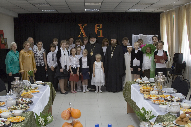 После поздравлений архиепископ посетил воскресную школу при Боровском монастыре. Литературно-музыкальная студия «Слово», руководителем которой является Наталья Николаевна Латынова, продемонстрировала композицию по нескольким темам: Пасха, Родина, Семья и т.п. Затем был показан спектакль «Маленький принц» по мотивам повести А.Сент Экзюпери. Владыка отметил высокий уровень мастерства игры детей, уровень работы педагогов, благословил всех иконками Воскресения Христова и пожелал дальнейших успехов в их детских миссионерских трудах.