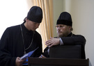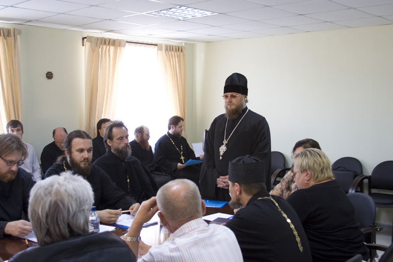 8 июня в Миссионерско-просветительском центре при Свято-Пафнутьевом Боровском монастыре состоялась рабочая встреча руководителей образовательных учреждений Боровского района и священников, закрепленных за этими учреждениями распоряжением митрополита Калужского и Боровского Климента. В совещании приняли участие благочинный 1-го округа архимандрит Серафим (Савостьянов), заведующая отделом образования администрации Боровского района Л.С.Силаева, руководители учреждений дошкольного, среднего и средне-специального образования, специалисты отдела образования администрации Боровского района, духовенство Боровского благочиния.