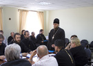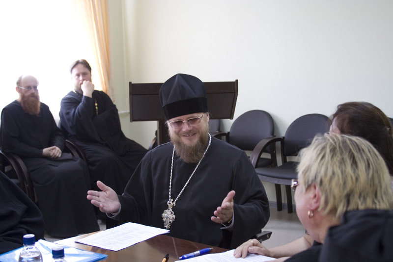В начале встречи архимандрит Серафим поприветствовал собравшихся педагогов и священников, выразил благодарность за те труды, которые они несут по воспитанию детей и молодежи, а также выразил надежду, что и в дальнейшем, несмотря на непростые условия, падение нравственности, и зачастую низкий уровень ответственности молодых родителей за воспитание своих детей, педагоги и священники продолжат совместную работу по воспитанию молодого поколения в духе христианской нравственности и уважении к традиции Православной Руси.