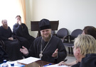 Также были предложены возможные варианты участия священников в жизни школы - участие в классных часах, родительских собраниях, участие в проведении уроков ОПК непосредственно в храме, помощь в подготовке к проведению православно-ориентированных праздников, проведение торжественных мероприятий по случаю начала и завершения учебного года и других мероприятиях, проведение краеведческих экскурсий и паломнических поездок как с учащимися, так и с педагогами. Также была обсуждена возможность участия священника в педагогическом совете образовательного учреждения, если он посвящен вопросам воспитания. Т.В. Анохина обратила особое внимание собравшихся на новую методику работы, апробированную иноком Максимом (Смирновым) и протоиереем Александром Падылиным в двух школах района. Суть методики заключается в том, что перед приходом священника на классный час, педагог предлагает детям подготовить вопросы батюшке, а после беседы сформулировать, что нового школьники узнали, и какое впечатление на них произвела эта встреча. Таким образом, педагог и священник получают возможность выяснить, какие вопросы наиболее сильно волнуют детские души и как правильно выстроить совместную работу.