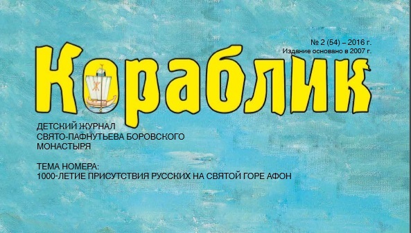 Издательством Свято-Пафнутьева монастыря выпущен новый номер журнала "Кораблик". В издании публикуются просветительские материалы для чтения детей и родителей. Второй номер журнала "Кораблик" в 2016 году посвящен 1000-летию присутствия русских на Святой Горе Афон. Приобрести печатную версию журнала можно в иконно-книжной лавке монастыря. Познакомиться с электронной версией издания можно здесь. Ознакомиться с условиями подписки на журнал можно здесь.