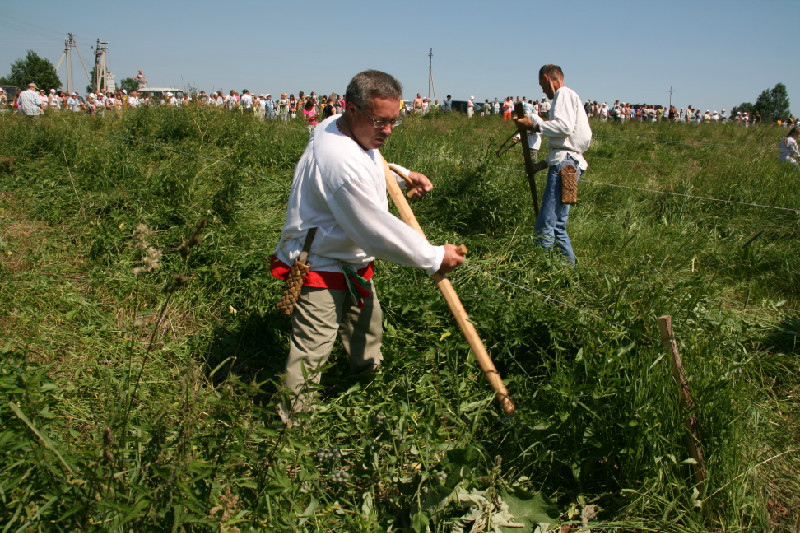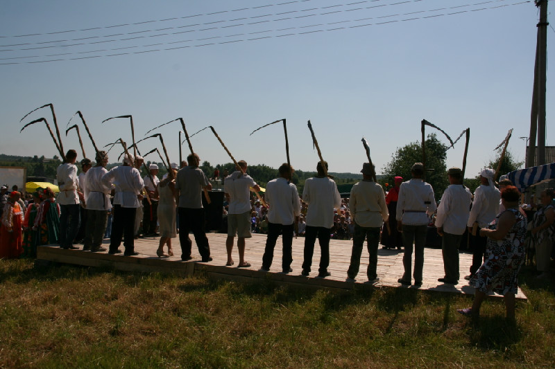 На сенокосный фестиваль каждое поселение выставило свои команды косарей и стогометателей, в деревне была развернута ярмарка ремесел. Всеобщим ликованием был встречен парад косарей, который мощной колонной двинулся в окрестности деревни.