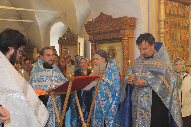 Архиерейское богослужение в Благовещенском соборе Боровска |