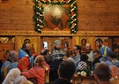 Несмотря на дождливую и пасмурную погоду храм не мог вместить в себя всех желающих принять участие в соборной молитве, так что люди располагались на гульбищах (крытых галереях) храма и через открытые окна и боковые двери наблюдали за службой. Богослужение прошло на одном дыхании. Причастников в этот праздничный день было 230 человек. Радость праздничного события очевидно витала в воздухе, наполняла духовным утешением сердца молящихся и объединяла их в единый хвалебный хор с небесными силами. В своем слове отец Власий прославлял Царицу Небесную, милосердие Которой никогда не оскудеет ко всем призывающим Ее.
