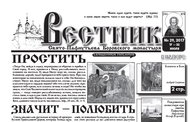 Свежий номер "Вестника" с материалом о монастыре времен прп. Пафнутия