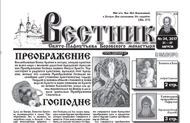 Свежий 34-й номер еженедельника "Вестник" с материалом о монастыре времен прп. Пафнутия