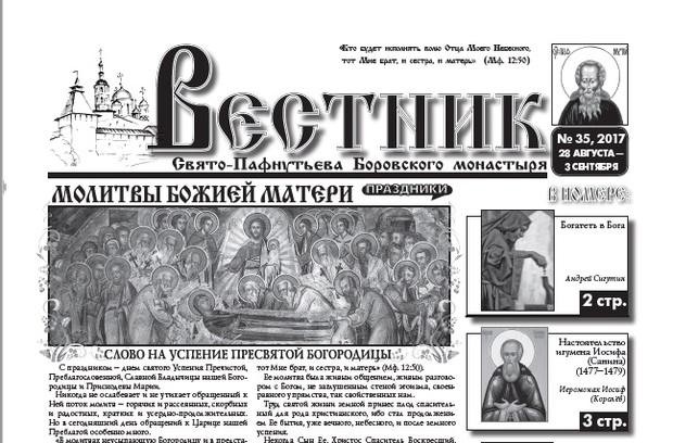 Свежий 35-й номер еженедельника "Вестник" с материалом о монастыре времен прп. Пафнутия