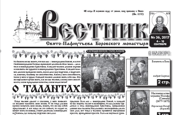 Свежий 36-й номер еженедельника "Вестник" с материалом о монастыре времен прп. Пафнутия