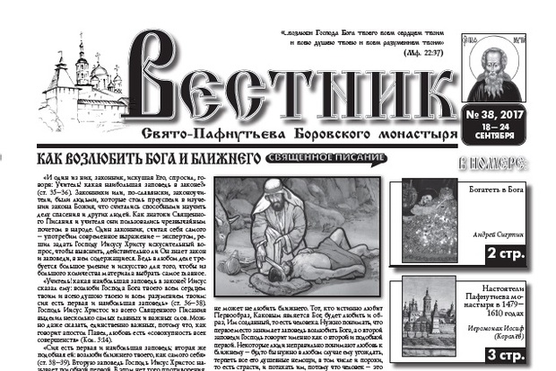 Свежий 38-й номер еженедельника "Вестник" с историческим материалом о монастыре