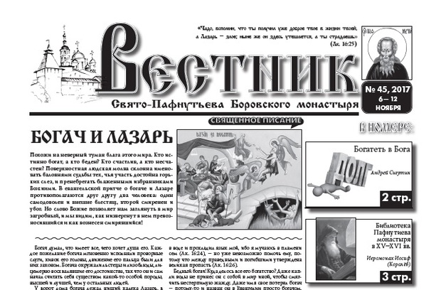 Свежий 45-й номер еженедельника "Вестник" с историческим материалом о монастыре