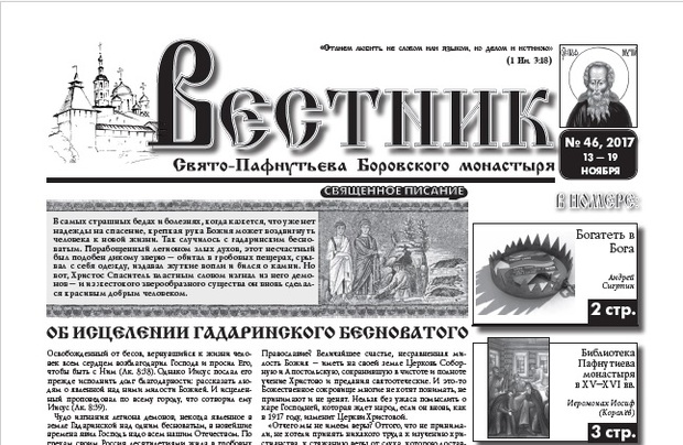Свежий 46-й номер еженедельника "Вестник" с историческим материалом о монастыре