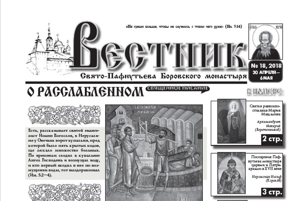 Свежий 18-й выпуск еженедельника "Вестник" с материалом о Пафнутьевом монастыре