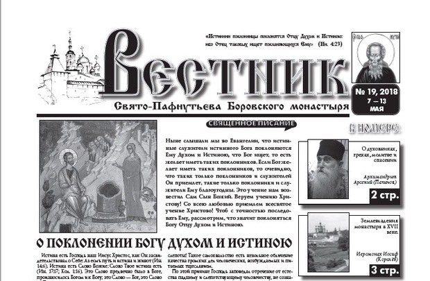 Свежий 19-й выпуск еженедельника "Вестник" с материалом о Пафнутьевом монастыре
