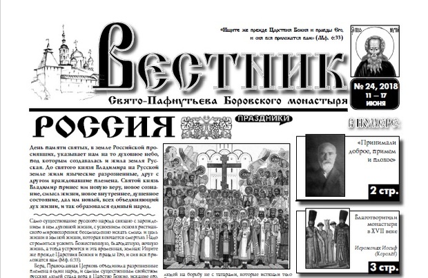 Свежий 24-й выпуск еженедельника "Вестник" с материалом о Пафнутьевом монастыре