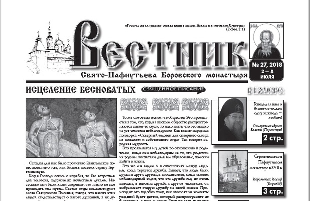 Свежий 27-й выпуск еженедельника "Вестник" с материалом о Пафнутьевом монастыре